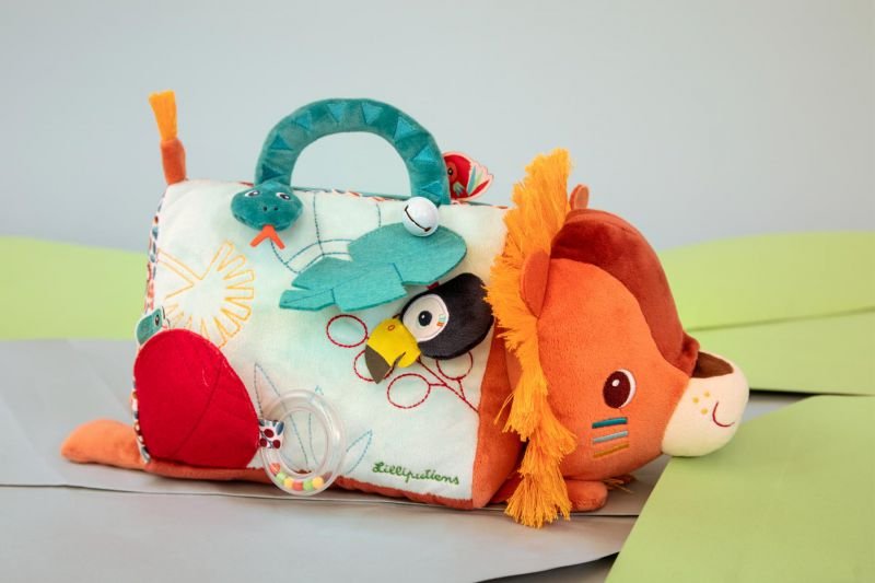Jack el león se presenta en forma de triángulo. Con un gran espejo en un lado y una multitud de actividades en el otro, desarrolla los sentidos de los pequeños exploradores. Texturas variadas, colores vibrantes y elementos táctiles garantizan horas de juego y estimulación sensorial.
