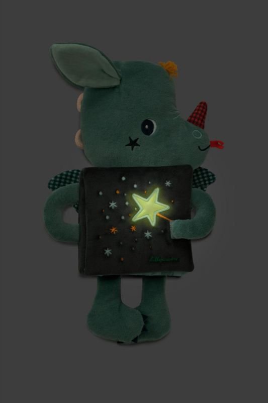 Este irresistible libro-doudou seguro que tranquilizará a tu bebé. El libro ofrece una serie de actividades relajantes. El suave tejido y los simpáticos morritos piden mimos. Cuando se apague la luz, la ilustración de la tapa se iluminará, convirtiéndose en una luz nocturna hasta que tu bebé se duerme.